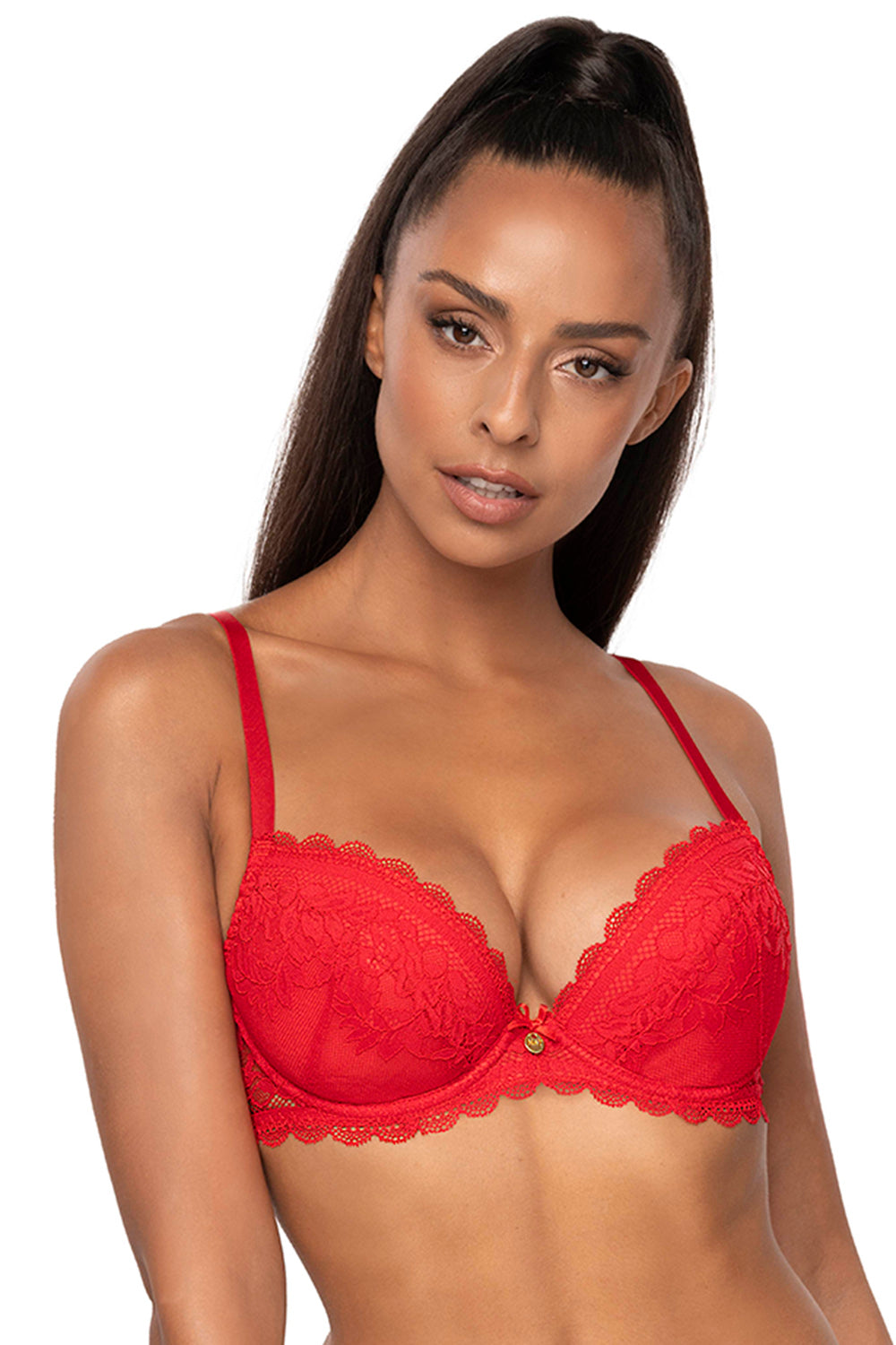 Mat brand bra. Model 0198/11/2 Estelle. It has wires that support the breasts, shaping them appropriately. The product has adjustable straps without the possibility of unfastening them. The hooks for the straps are made of metal. The bra is fastened with hooks. The place of fastening: the back. Two rows of vertical hooks. Three ranks of horizontal embroideries.